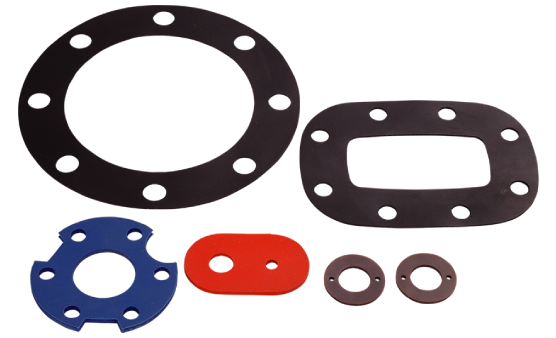 Gaskets die‑cut from rubber into flange or ring shapes.