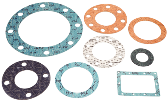 Sheet gasket material made from fibers, fillers, and rubber; processed to the required shapes and offering high flexibility.